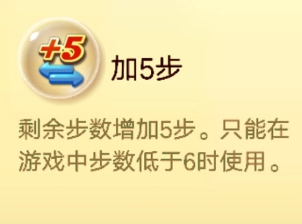剩余步数增加5步,只能在游戏中步数低于6步时使用,不限使用次数。