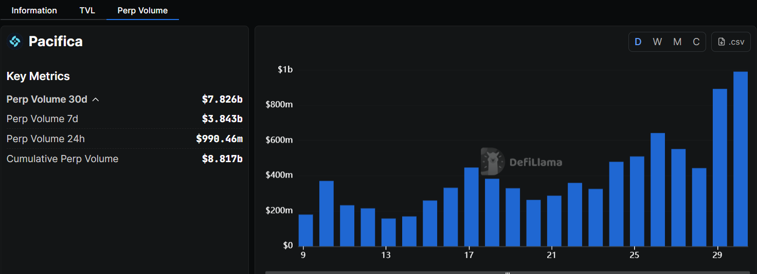 Pacifica是本榜单的黑马。这个由前FTX团队基于Solana构建的交易所虽处封闭测试阶段,却已跻身交易量前十。