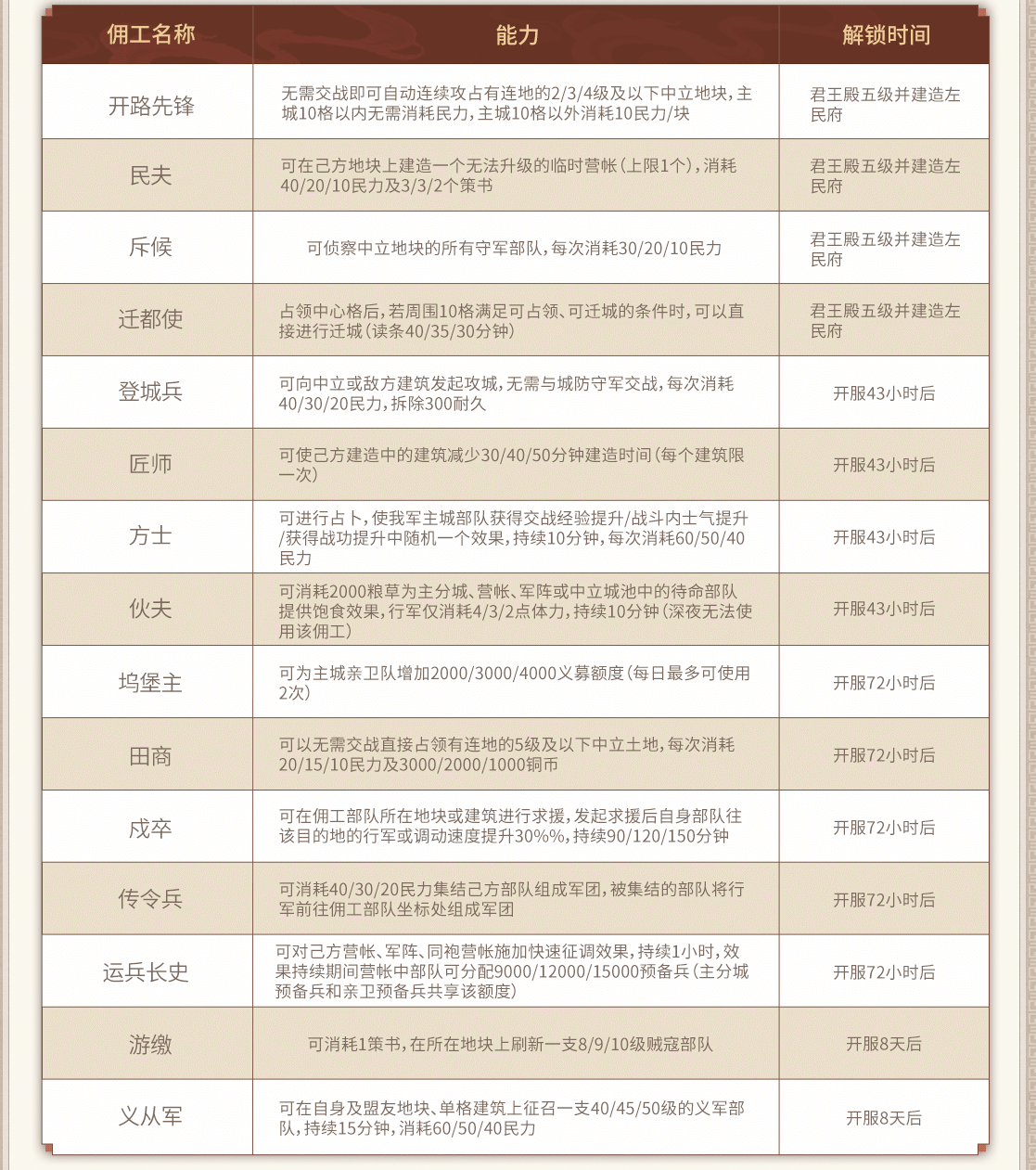 仆人的部队是特殊的主要城市部队,只能通过沙桌仆人的指挥进行操作。