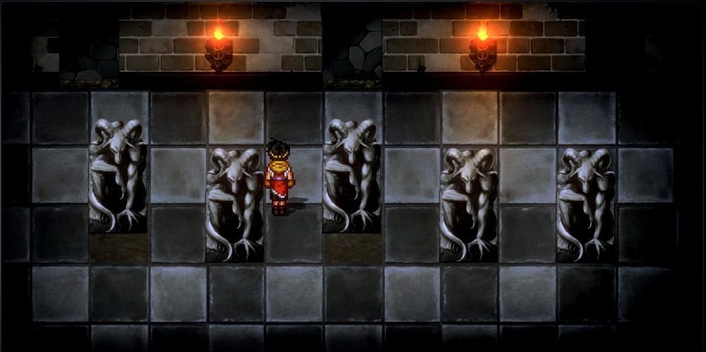每种类型的怪物都非常强大,迷宫本身并不困难。用石板打开门。老板应该注意让主角补充他的鲜血,并可以轻松地击败它。