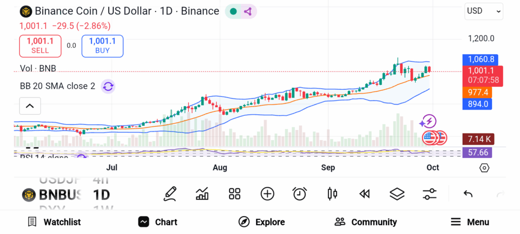 币安币市值稳居前五大加密货币,仅次于XRP。该代币近期创下1,083美元历史高点后小幅回落。即便下跌7%,BNB仍保持在关键上升趋势线上方。若买盘压力持续,这股势头或延续至2026年。BNB兼具支付代币和BNB Chain治理工具双重功能。