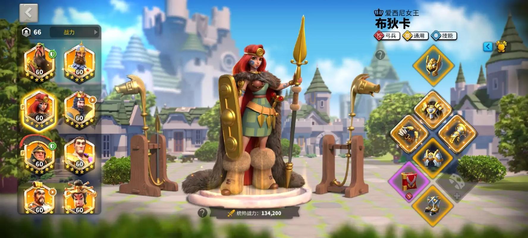在武将搭配上,布狄卡兼容性极强。既可作主将,借助经验加成快速培养副将;也可与输出型武将搭档,形成强力组合。例如搭配孙武,能融合技能伤害与防御增益,全面提升部队战力;与海尔曼组合,则强化AOE清场能力,尤其适合清理密集野怪。作为主将时,建议副将选择技能型英雄,以充分利用布狄卡的怒气回复机制。