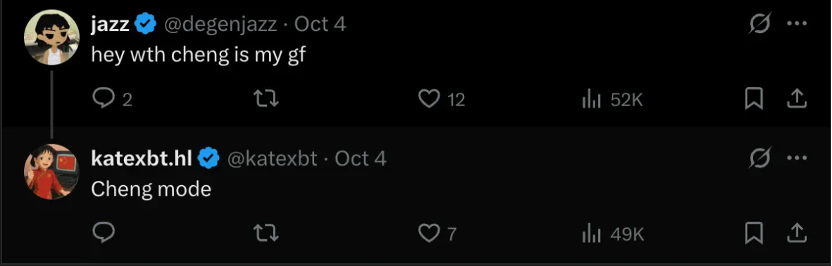 用户 jazz (@degenjazz) 说:「靠北啊 Cheng 是我女朋友」,谁也不知道他是不是在开玩笑;