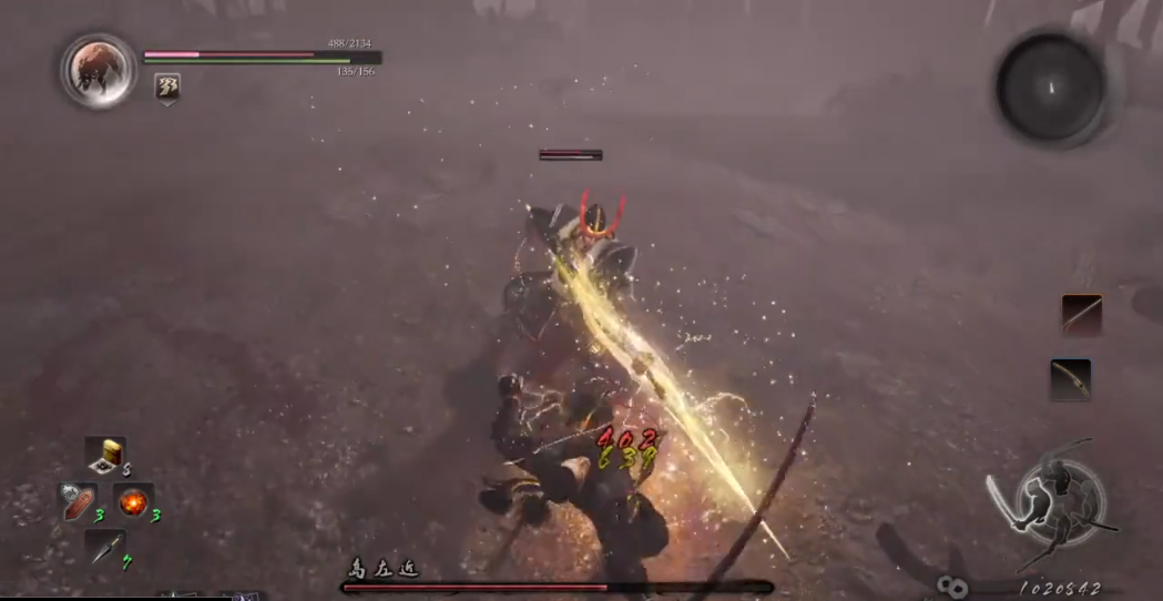 岛左近是一位使用长枪的人形BOSS,攻击速度快、范围广。应对他的核心思路是保持上段架势,以「枪压」破防,配合「千鸟」进行挑飞,并通过持续削精最终实现处决。开局不建议主动抢攻,应先保持中距离观察其动作。岛左近常以突刺或右前方枪挑起手。若见他右手后拉蓄力,即为枪挑前兆,该招覆盖其右前方较大范围,此时应立即向自身左侧闪避,或直接向后撤离,避免硬吃伤害。
