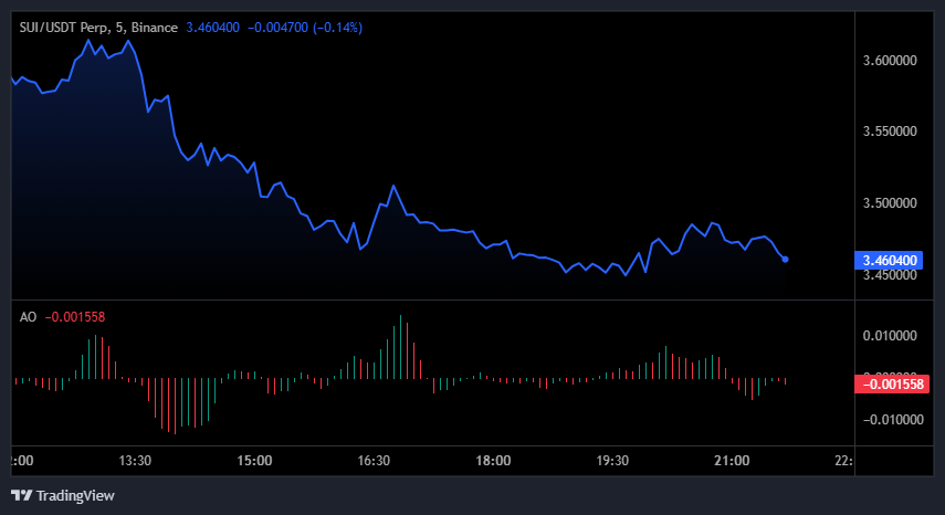 SUI仍处于3.50美元日内阻力位下方,短期趋势略微看跌。但AO斜率递减表明空头动能即将衰竭。若成功收复3.50美元,可能推动价格向3.55美元短线反弹,形成早期反转信号。