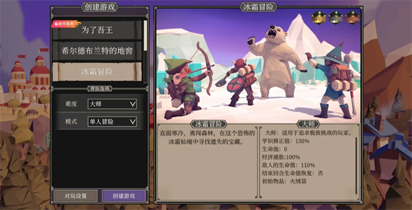 打冰霜这个图,推荐1号位工具人卖艺人,2号位设陷师/猎人,3号位学者。这个图再怎么打不过都可以苟着,地图分4个区域,其实新手村寒冷-1血,海上城镇和最近的城镇区域都是-3血,冰霜之巅区域-5血,但是除了海上城镇其他地方镇子都需要玩家解救,可以先拍营地直接睡觉补状态。后面打不过就苟在城镇里,靠着装备慢慢回血,甚至可以在新手村玩一年把等级练满再出门