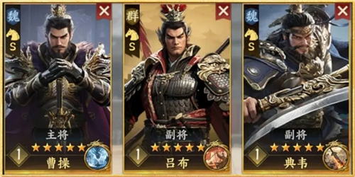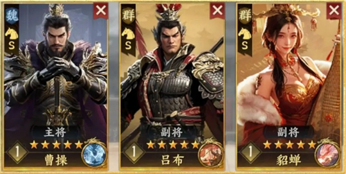 曹操的被动(武力最高增伤+全队增伤)与貂蝉的被动(武力最高增伤)叠加,最大化吕布的伤害,爆发能力极高,可实现大范围战场输出。同时曹操的免疫减速被动,能有效针对孙坚、郭嘉等减速体系,可依靠高机动性绕开前排。
