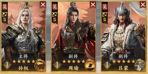孙权可范围施加易伤,还能提升部曲所有武将主动技能伤害周瑜施加的燃烧伤害非常可观,同时吕蒙对处于燃烧状态的敌方部曲还可额外提升伤害,在大规模团战中有优异的表现。