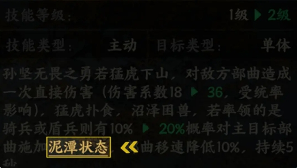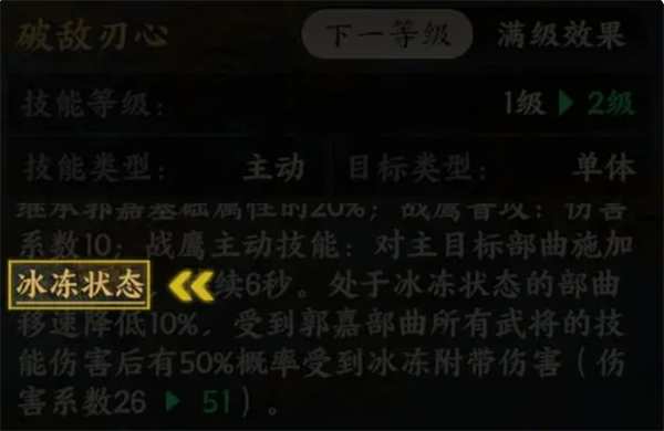 应用场景:降低敌方伤害输出能力,能显著增强己方部曲的生存容错,在开荒阶段亦或团战中较为常用。