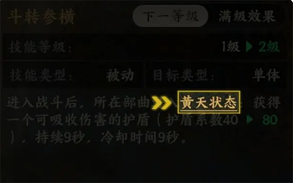 【黄天状态】:在黄天状态期间,获得一个可吸收伤害的护盾。