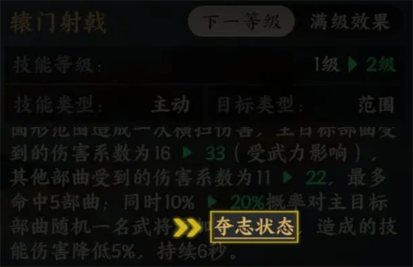 【夺志状态】:在夺志状态期间,敌方武将造成的所有技能伤害降低
