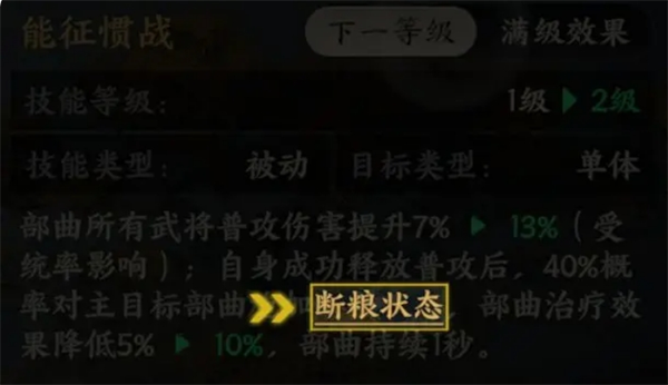 【断粮状态】:在断粮状态期间,敌方武将造成的所有治疗效果降低。