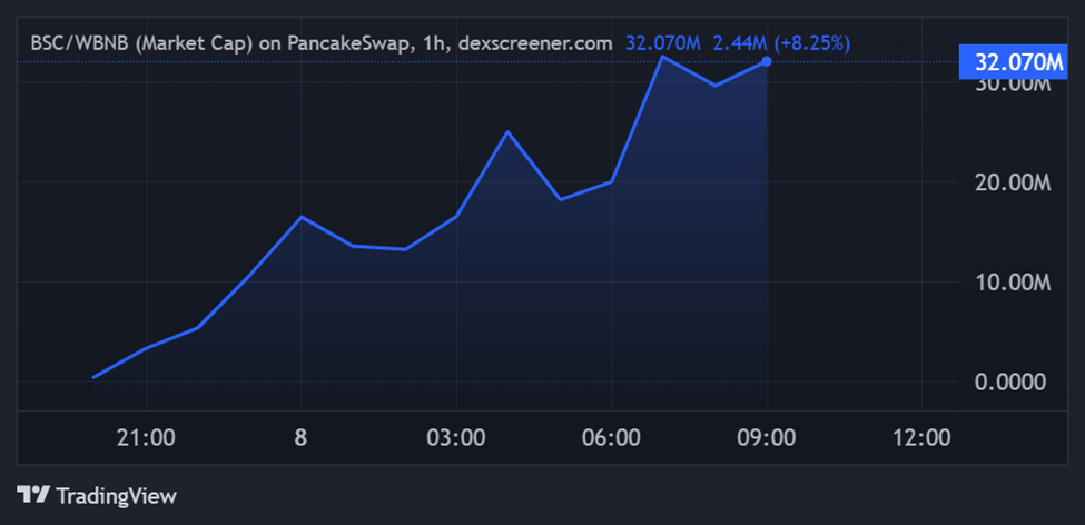 狂热情绪引发全面上涨。数小时内,PancakeSwap上线的meme代币BSC市值从不足100万美元飙升至3200万美元,顶级KOL纷纷入场。