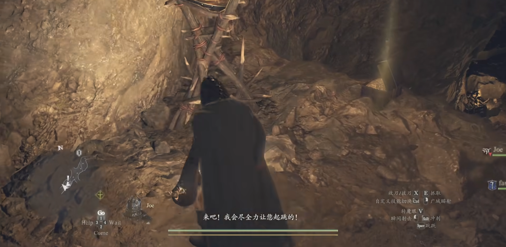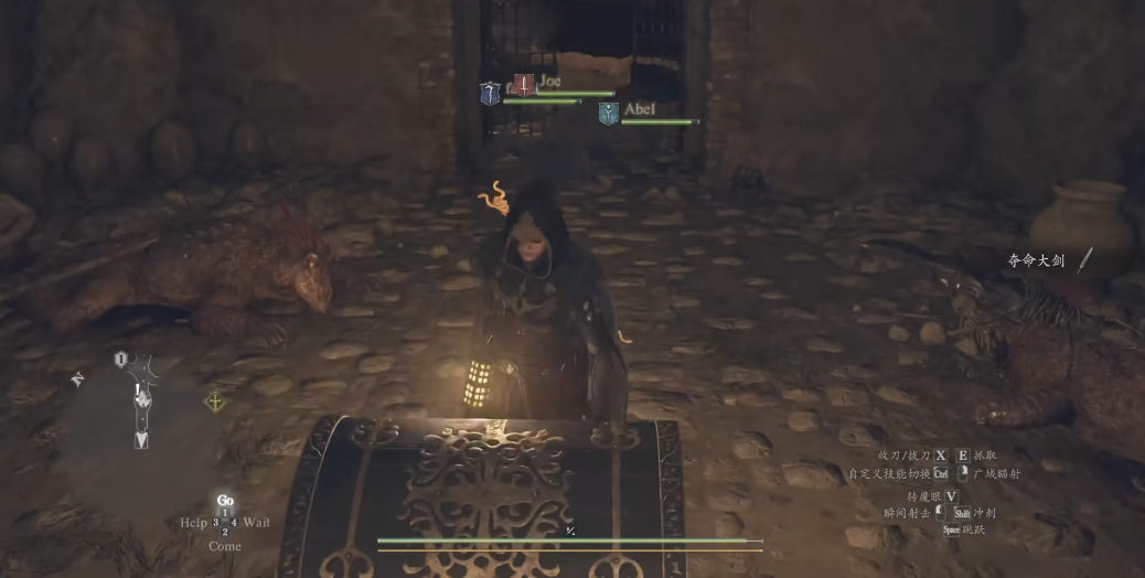 洞穴内的路径较为简单,沿主通道直行并拐过两个弯后,会看到一个高台。无法直接跳跃上去,可借助随从的漂浮术或垫放箱子攀爬。登上高台后进入房间,清理其中的小怪,便可在角落的宝箱中找到夺命大剑。宝箱中还可能开出金币、药草或低级装备。该武器为双手大剑,攻击力151、斩击力100、击退力220,手感沉重、输出强悍,尤其适合战士职业,其连招可造成硬直,对抗巨魔或食人魔等大型敌人效果显著。