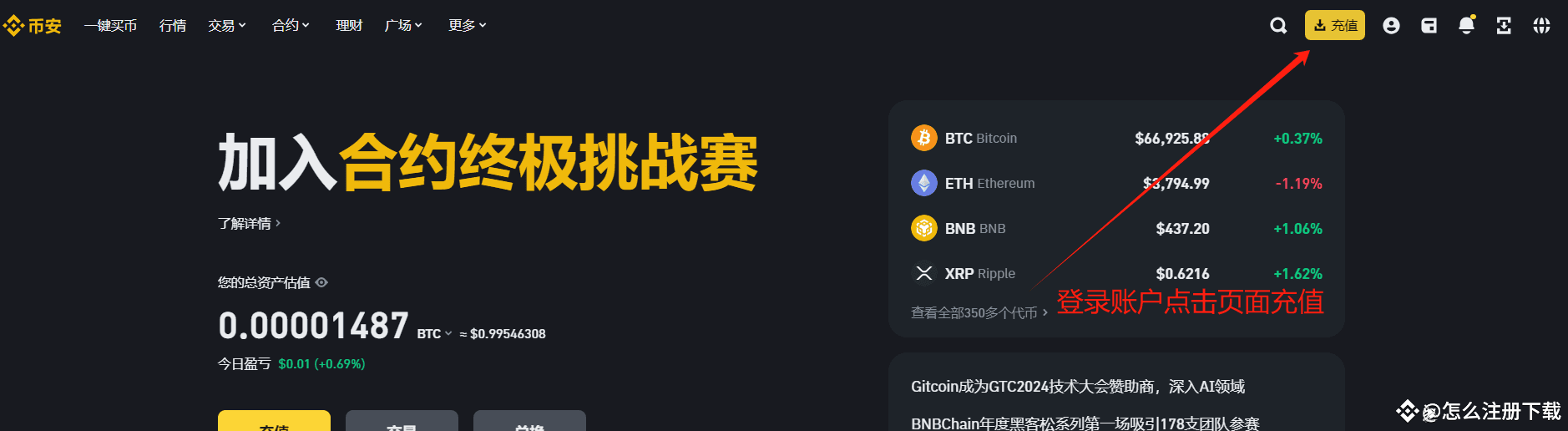 步骤一:进入币安官网或打开币安App(填写推荐码:YISPALEX 可享受20%返佣)