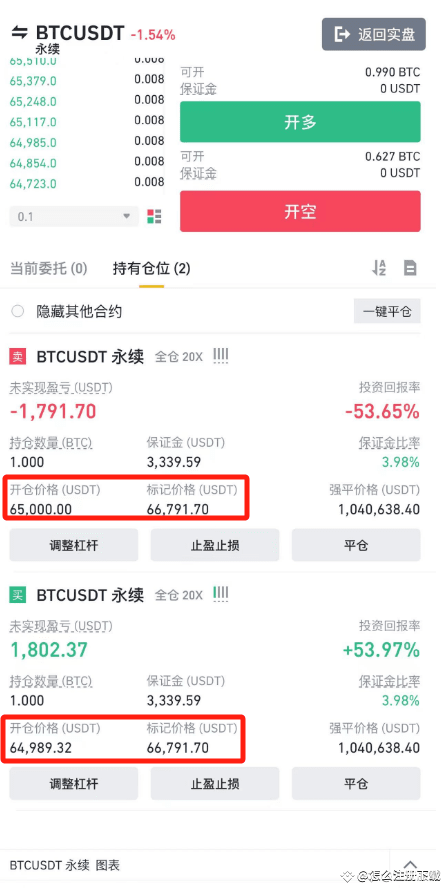 第一个仓位是空仓,看跌的仓位平仓价格小于开仓价格是盈利的,我这里设置的未实现收益是按照标记价格计算的,标记价格大约开仓均价,所以持仓是亏损的。