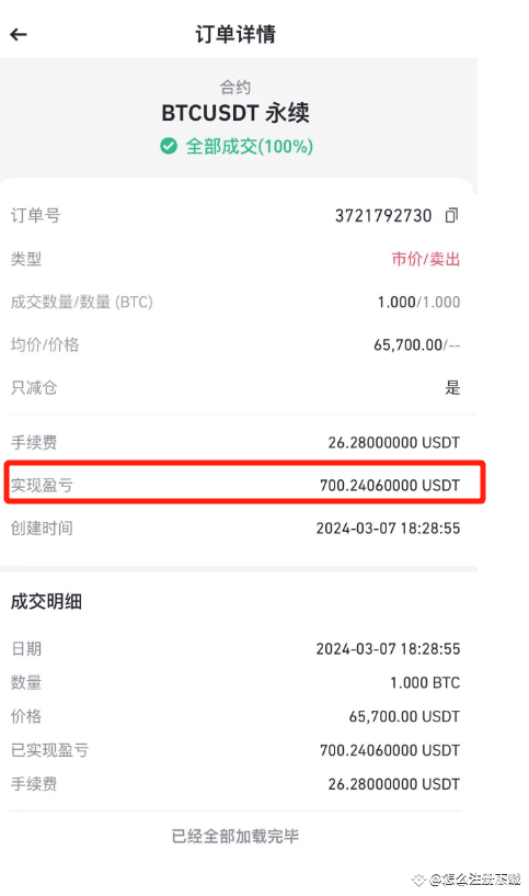当平仓后,收益可以到历史委托查看,比如上方截图,开仓均价是65000,平仓均价是65700,平仓1个btc,收益是700,以上计算是不考虑手续费的。