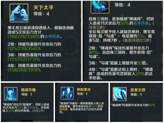 黑无常负责法术爆发和真实伤害,伏羲提供物理群伤和控制,武罗加速输出循环并提供治疗、增益和沉默控制。