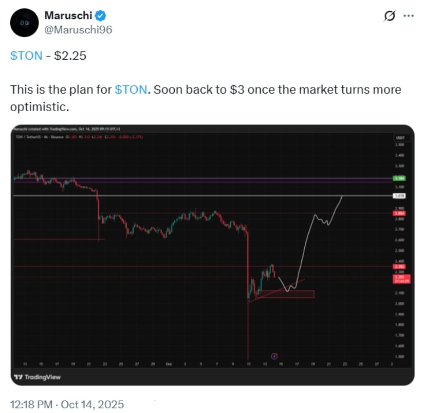 Toncoin现报2.25美元,市场情绪改善下有望冲击3美元关口。来源:@Maruschi96 via X