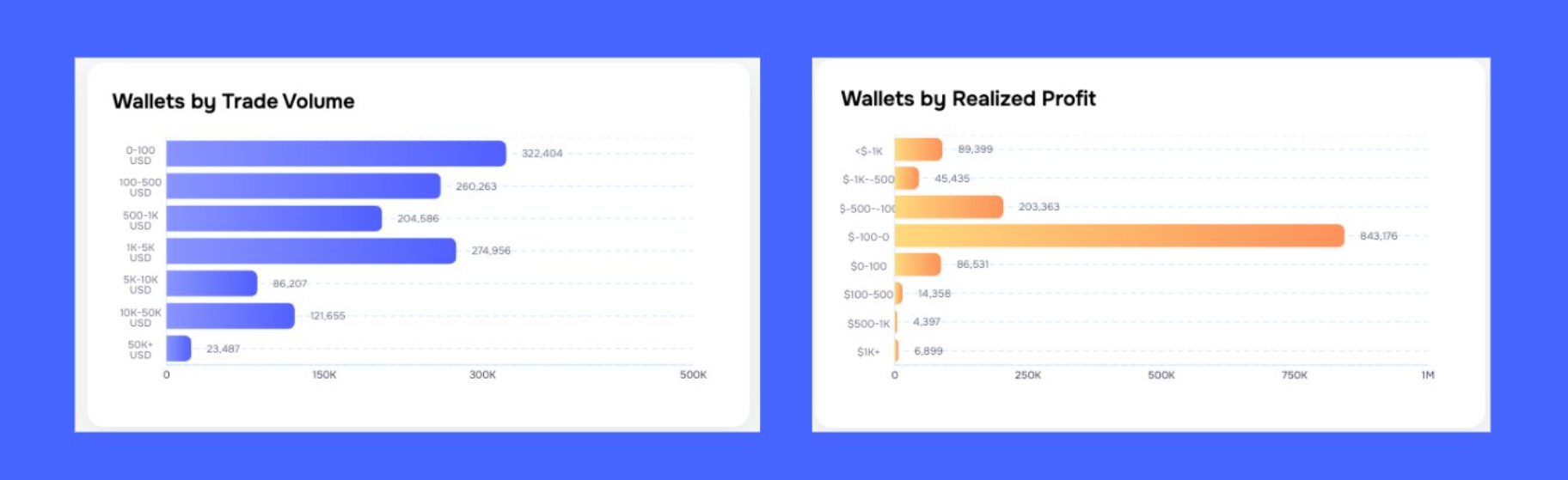 尽管如此,竞争环境仍然严重倾斜。BlockBeats的数据显示,只有0.51%的用户利润超过1000美元,仅有1.74%的交易量超过5万美元。