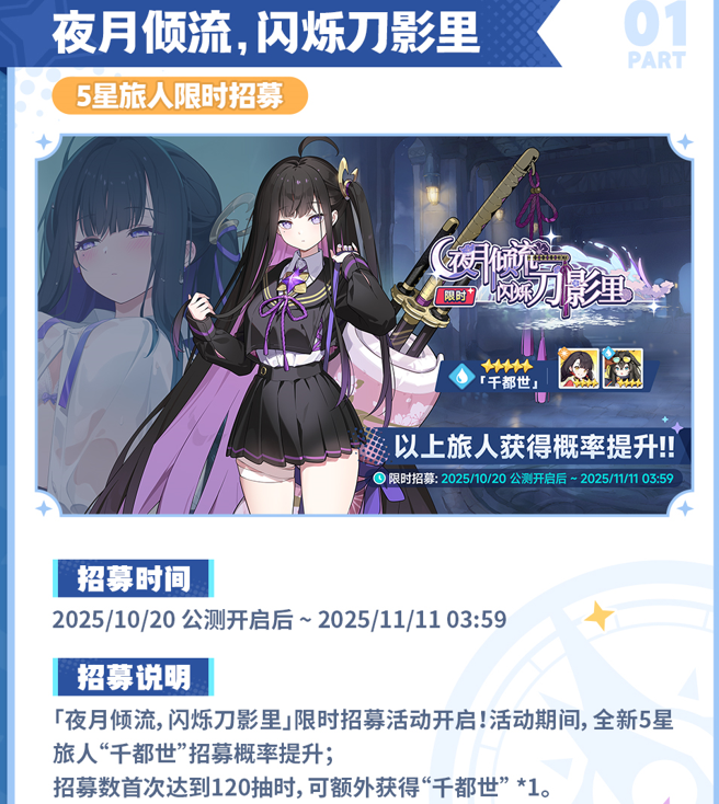 全新五星旅人「千都世」、五星秘纹「潋滟故池水」与密涅瓦全新形象「微醺白日梦」即将登场,全新旅人故事、限时玩法及福利活动等内容将在公测开启后同步推出。查看图片可了解公测版本内容详情~