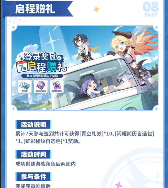 公测开启后,魔王大人可通过体验游戏获得[萌芽礼券]*40、[青空礼券]*30、[亮银闪碟]*21000、[虹彩秘纹自选包]*2、[闪耀简历自选包]*1、一名常驻五星旅人等福利内容!
