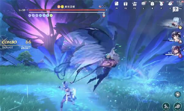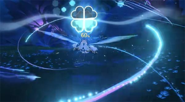 在捕获仙菜灵蝶之前,你肯定需要先与它战斗。当你与仙菜灵蝶战斗时,你可以在生命条旁边看到三个红点。这些点也代表不同的阶段。战斗开始后,玩家需要使用近距离输出角色进行战斗。时,仙才灵蝶会对敌人发动水属性攻击。第一阶段,它会用水波攻击我们。只要避开眼前的水浪我们就可以继续输出。不建议大家在第一阶段捕捉它,因为这个阶段仙才灵蝶的生命值还很高,很容易失败。