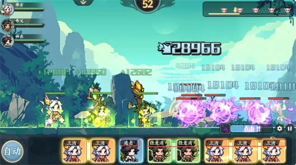 大家只需要按照消除类型进行合理地搭配组合,进战斗后打开自动战斗,然后欣赏爽快的战斗过程就可以啦!