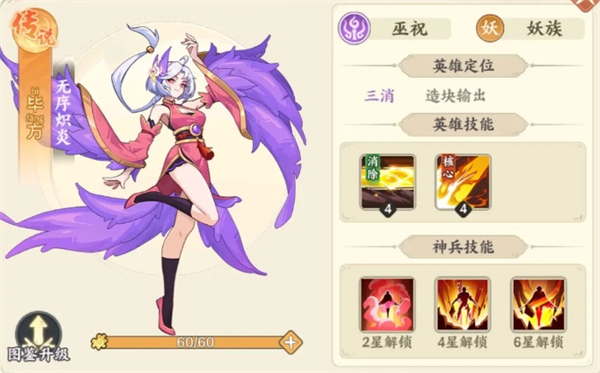 大多数三消型的英雄,其核心技是依靠三消进行触发,如例子中的毕方,自身三消时会额外触发强力的直线穿透伤害技能。