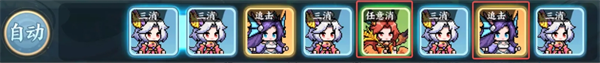 不过没关系,在游戏初期我们就提供了自动战斗的功能,会根据“凑三消”的原则自动进行消块,足够应付大多数战斗了。