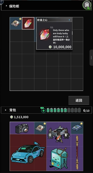 5、高质量的地点,普通资源,高级资源,保险柜子会随机刷新,大和小,还有一个是运营商的⭐型保险柜最少出一个红色的物品,但是要看一个广告,如果有运营商的⭐型标志,你可以选择租赁八个格子可以多放一些高质量的物品以便更快晋升青龙。