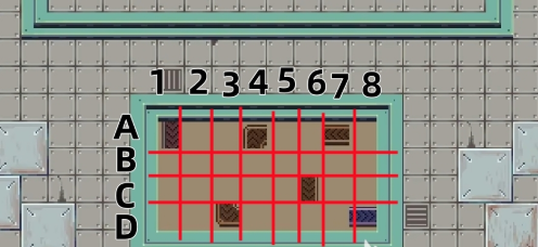 2、参照图如下:横排从上至下标注为A-D,竖排从左至右标准为1-8。