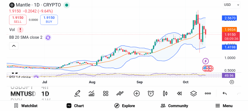 Mantle的MNT代币在市场下跌后展现强劲韧性。这个Layer2项目的代币现报2.15美元,较历史高点2.87美元低约33%。乍看差距显著,但单日32%的涨幅表明,在有利市场条件下MNT能迅速收复失地。技术分析呈现积极信号:2.29美元是关键阻力位,若转化为支撑位可能引发向2.87美元的强势反弹。Mantle的基本面也支撑这一预期,其不断扩展的DeFi生态和日益丰富的合作伙伴名单持续为代币吸引关注与流动性。