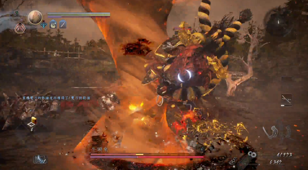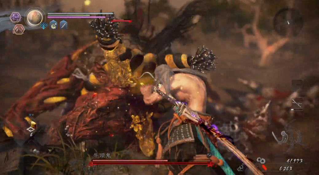 当牛头鬼身上泛起红光时,表明它即将发动强力技能如冲撞或砸地,这是绝佳的反击机会。红光出现瞬间应立即施展“妖反”,成功不仅可大幅削减其精力,更可使其倒地,此时可全力输出。若在中距离遭遇突然冲撞或横扫而来不及闪避,可按下防御键减轻伤害,这总比硬抗更为稳妥。