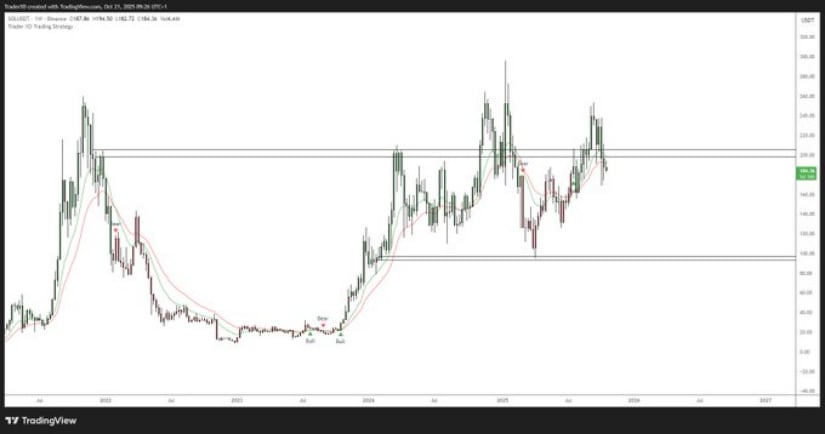 Solana持续在明确区间内交易,200美元水平成为确认大趋势的核心支点。交易员XO的图表显示,SOL仍被困在更高时间框架(HTF)的区间高点与中段流动性口袋之间。若果断突破200美元,将标志着自上次受阻以来的首次重大结构转变。