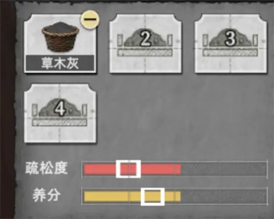 先加入 1 个「草木灰」可以看到疏松度刚好及格,营养高了