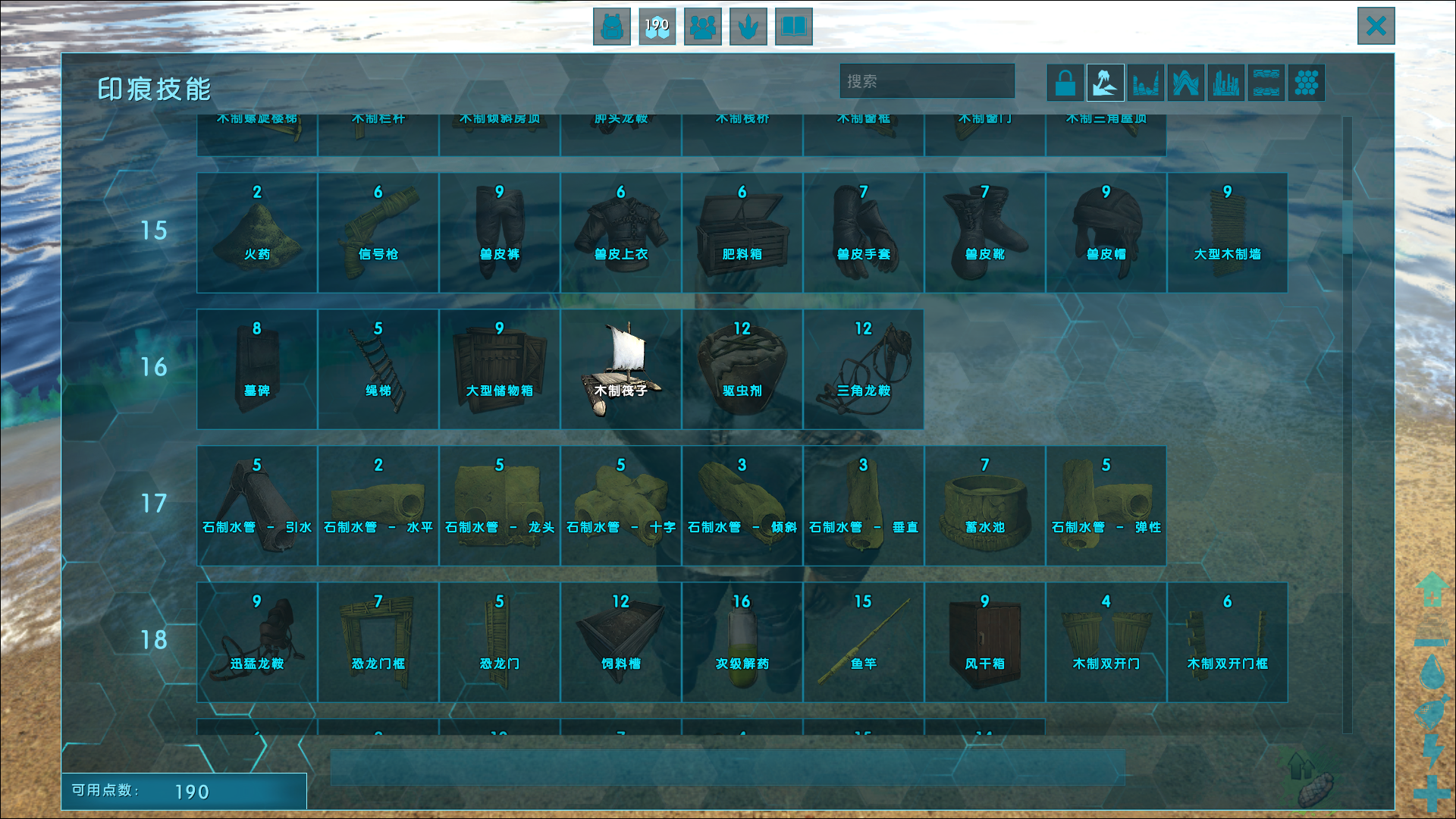 工具方面,石斧用于伐木,营火可加工熟肉并提供保暖,长矛是前期主要武器,睡袋用于设置复活点。弹弓与麻醉箭是驯兽核心——弹弓可击晕小型恐龙如双脊龙,麻醉箭则应对大型目标。属性加点建议优先提升负重与生命值,显著提高生存与资源收集效率。