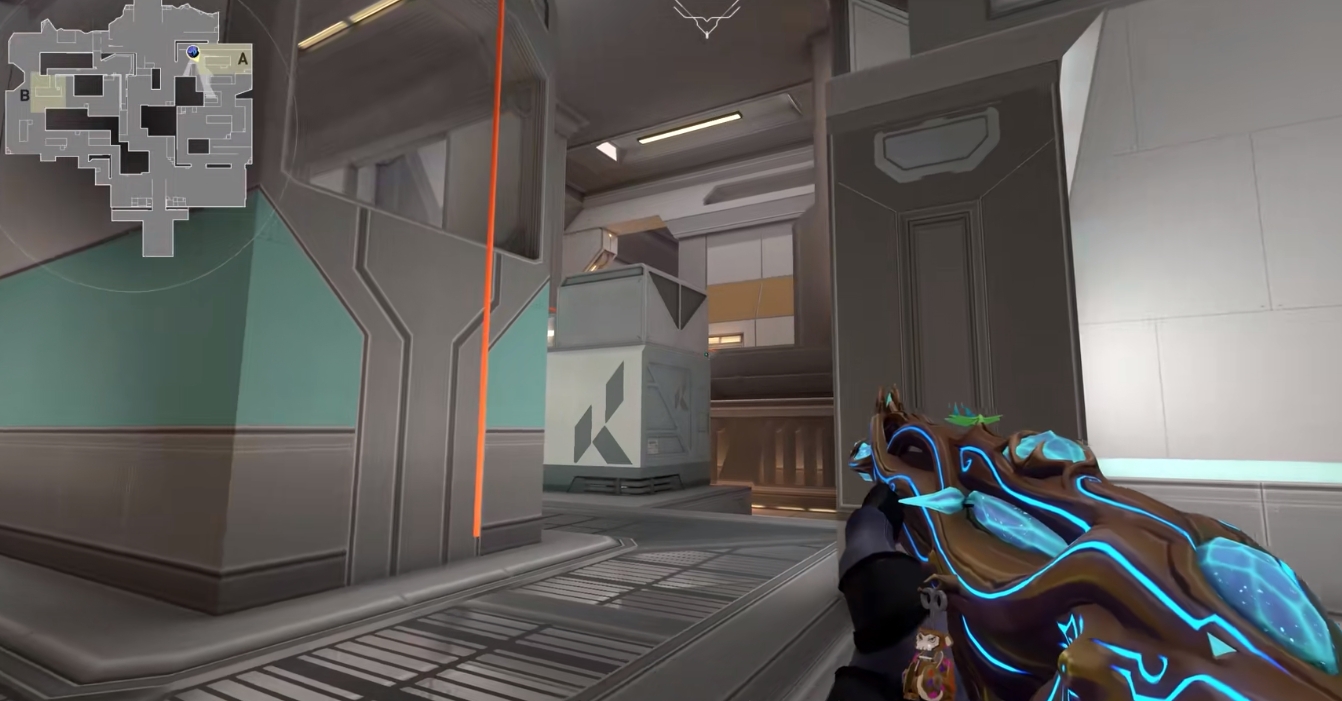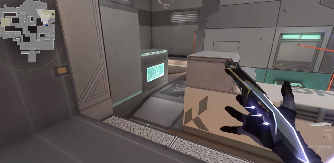防守时,在右侧布置单向烟:瞄准铁箱上方但略微偏外,效果更佳。在烟下我们可以先看到对方的脚部,而试图跃上箱子的敌人会因烟雾遮挡先露出头皮和枪管。发现企图趁机前压的敌人,可直接拉枪击杀。接着来到包点后侧,贴近铁箱封烟,瞄准右下角即可形成另一颗单向烟,此时也无需担心二楼来敌。
