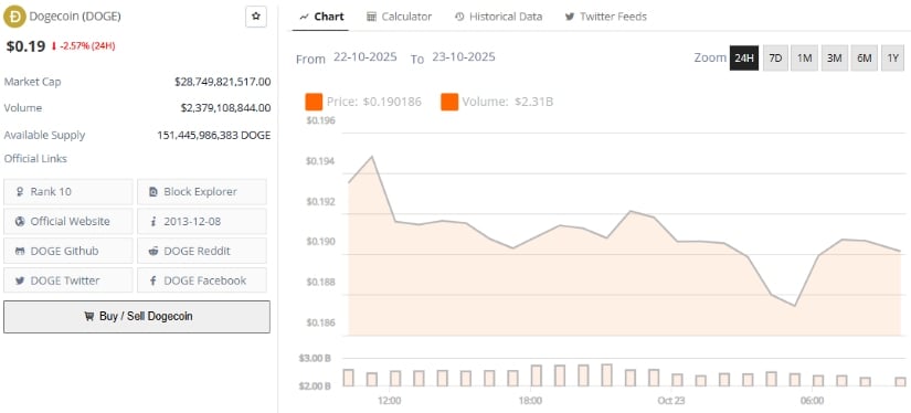 市场参与者对短期方向仍有分歧,但情绪正从谨慎转向静默乐观。"随着卖压减弱,动能趋于稳定",分析师Vee Peninah在Cryptonewsland撰文指出,"若DOGE在RSI支撑下守住0.19美元,突破概率将大幅提升。"