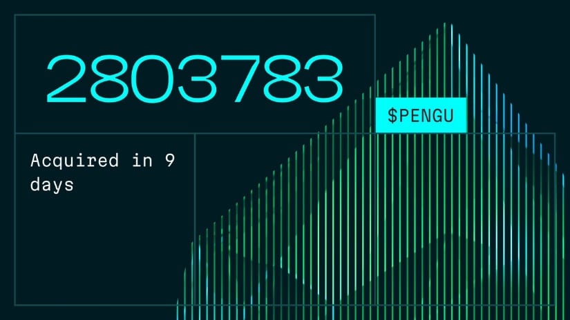 9天内积累超过280万枚PENGU代币,凸显了投资者的强烈信心和生态系统不断增长的实力。来源:Pudgy Invest via X