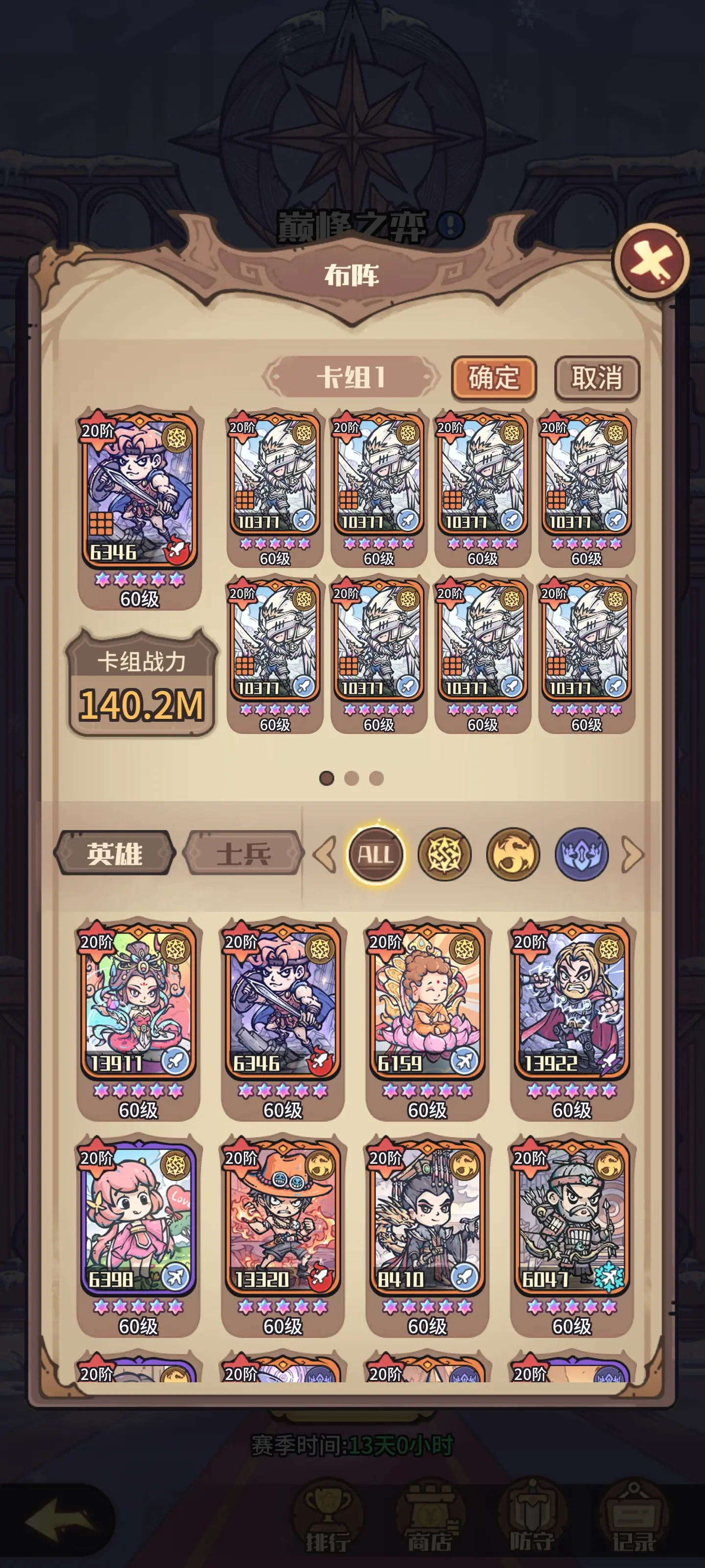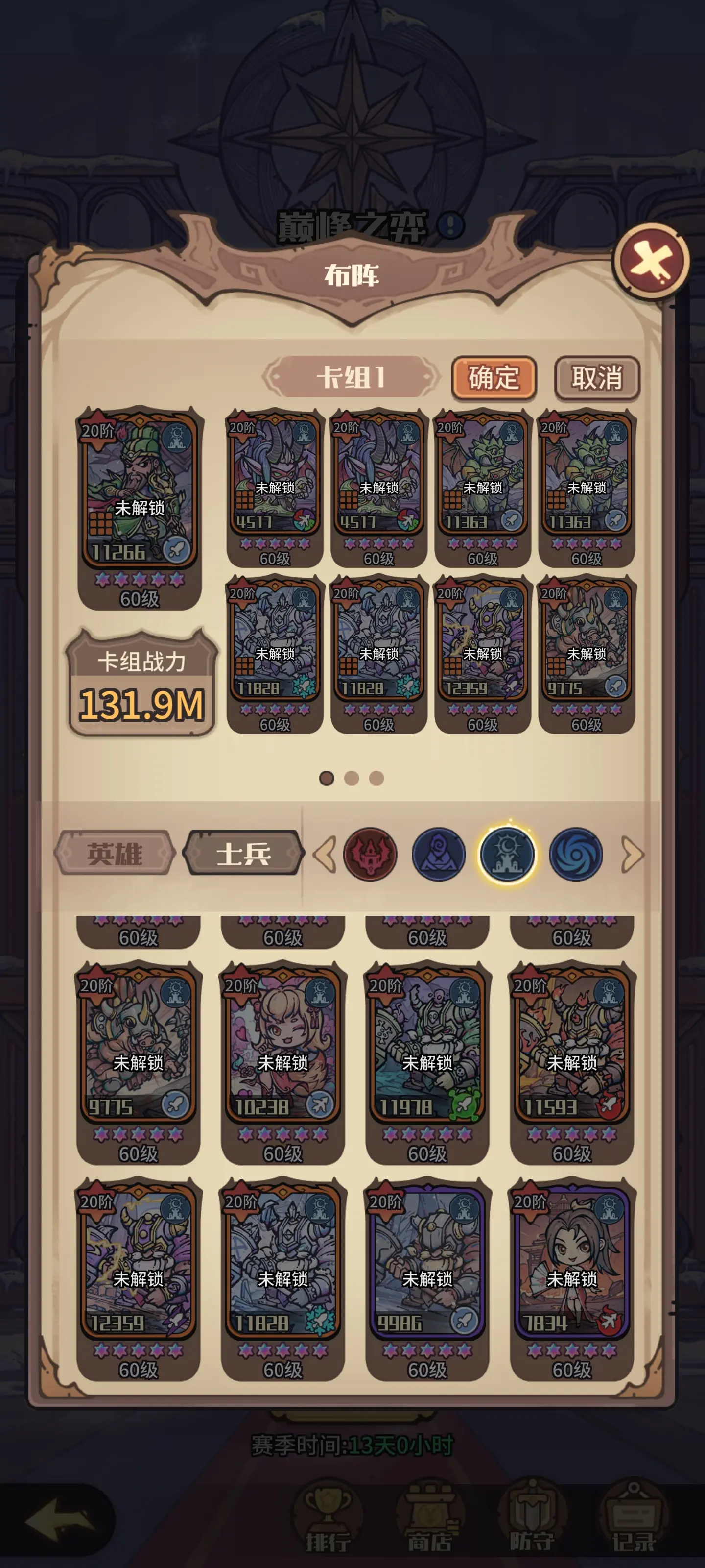 上面的卡牌除了恶魔猎手可以根据需要和练度调整数量