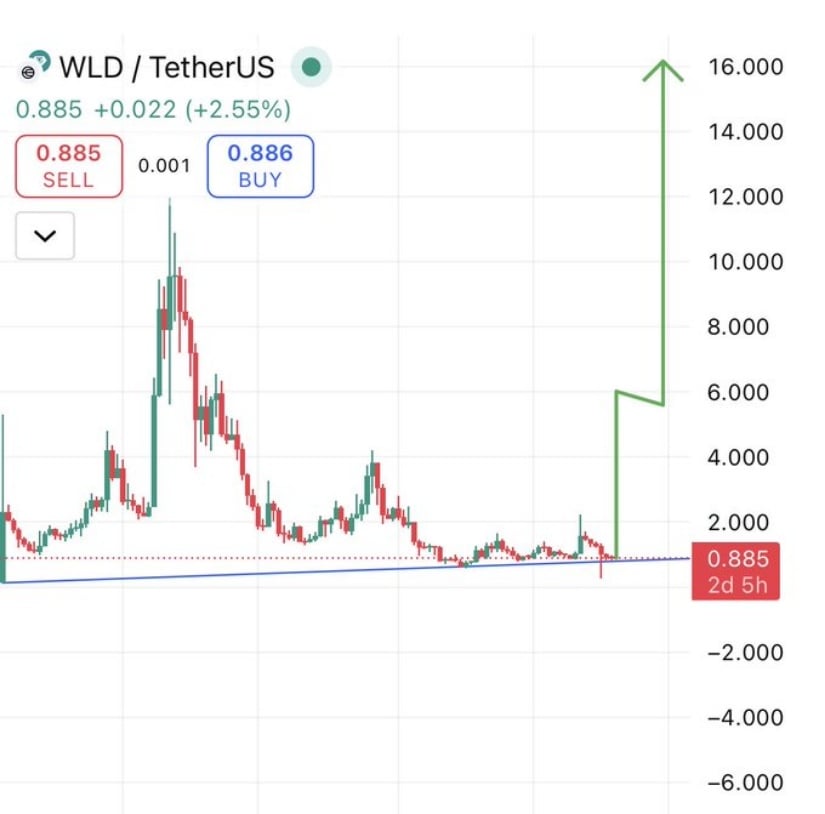 分析师TOP GAINER TODAY在近期X平台发文中强调,WLD/USDT交易对可能正在形成看涨结构。该代币当前交易价约0.885美元,涨幅2.55%,清晰的上升支撑趋势线表明经历数月下跌后或正构筑底部。该分析师虽提出16美元的乐观预期,但亦承认此目标需依赖重大催化剂,如交易量增长或强劲市场情绪。
