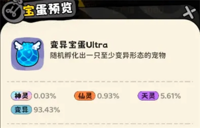6、宝蛋分为三种,正常宝蛋是显示什么形态只能开到什么形态的宠物。宝蛋Pro为当前冒险关卡的宝蛋,21之后可以开出天灵,31之后可以开出仙灵,51之后可以开出神灵。宝蛋Ultra为冒险80关宝蛋,一般只能充值获取。