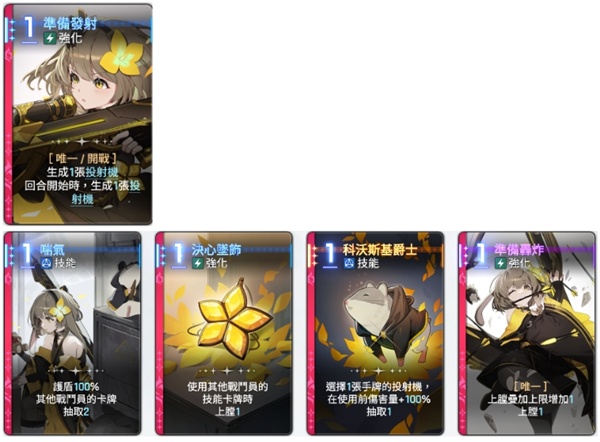 然后是定位上更偏向辅助的以下几位,因为职业定位问题,攻击面板相对来说比较低,所以比较难当主C启用。其中,如果打算启用卡莉佩,就一定要搭配有2C或者更高费卡的主C来启动天上牌。凯西乌斯万能辅助,什么队伍都能塞,究极过牌检索,麦格纳比较万金油,什么队伍都能带,每回合稳定反击1次,并且由于存在主导词条,所以经常可以0费白嫖。奥尔莱雅可以在手牌里合成大西瓜,或者用0费的输出卡补伤害,相对来说比较灵活。妮雅和蕾伊主要起到辅助大C的作用以及滤抽。玛莉贝尔比较像是麦格纳的下位替代,虽然两者运作逻辑有差别,但断费情况下都是1回合1反击的。