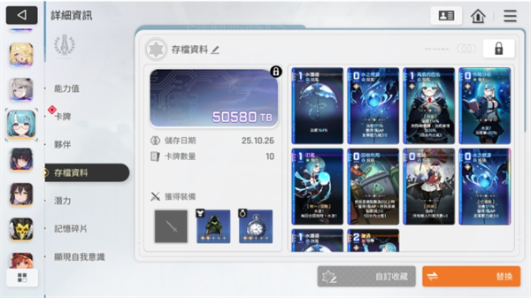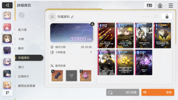 测试下来感觉比较占数据容量的是彩装备,神之一闪,删卡(没错,无论你删的是啥,好像都是会加TB的)。