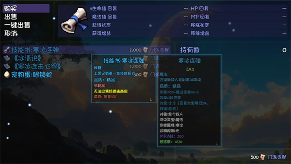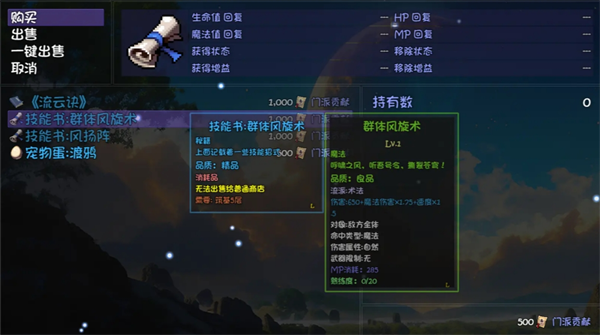 魔法学院内有NPC兑换四院通用技能,每一院也分别有各自的技能心法和宠物。