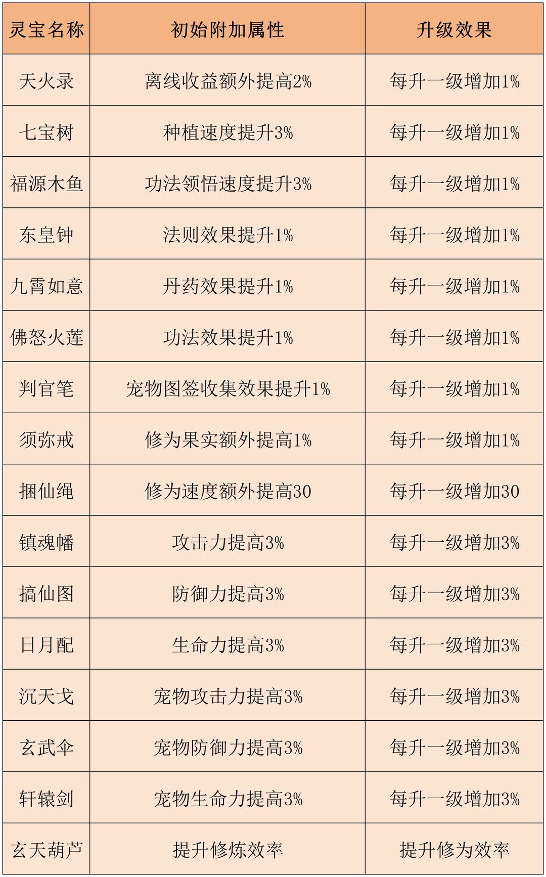 灵宝:一些灵宝激活及升级也增加修炼效果