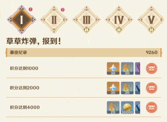 积分倍率选择10倍。第一关先遣准备推荐草元素和火元素角色,由于是需要尽可能多地击败敌人(水史莱姆),建议多上群攻和后台元素赋予角色,例如香菱,柯莱等。