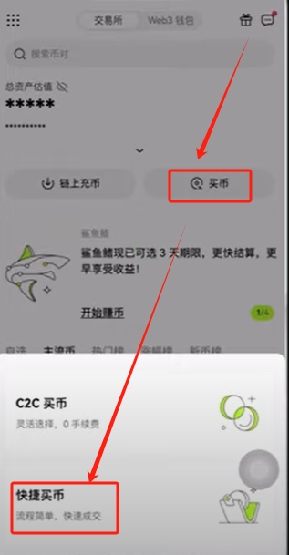返回首页点击【买币】,选择C2C或快捷买币。USDT作为美元稳定币,是购买比特币的中间媒介。输入购买金额后选择支付方式,系统将自动匹配商家。