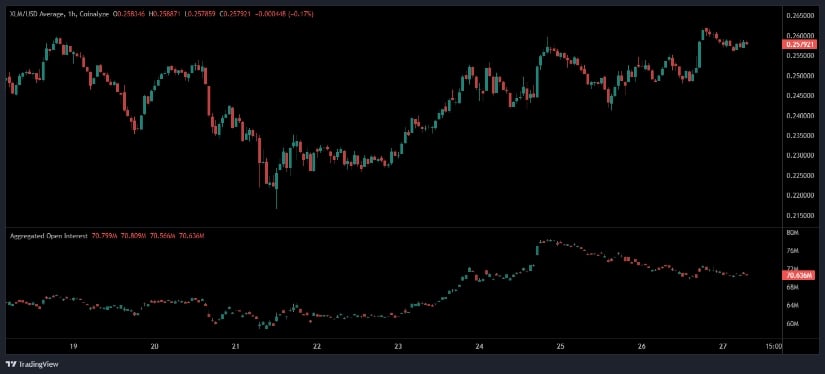 然而当未平仓合约在区间顶部附近见顶后,随价格稳定在0.26美元开始回落。该模式显示获利了结或可控去杠杆,而非激进做空。只要价格守住0.24至0.245美元的关键突破区域,日内上涨趋势便未破坏。若失守该区域,则表明多头头寸正在更坚决地平仓。